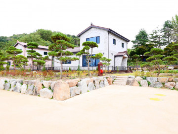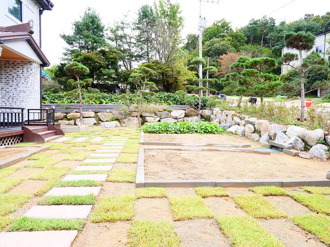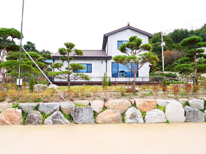 거실 중심의 개방감 있는 설계와 효율적인 동선으로 편안한 생활이 가능하며, 넓은 잔디마당, 데크, 화단, 텃밭, 수돗가가 어우러진 담백한 정원을 갖추고 있습니다.