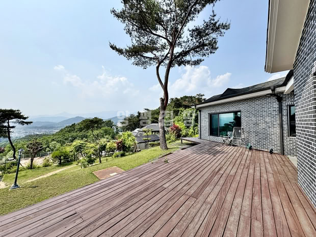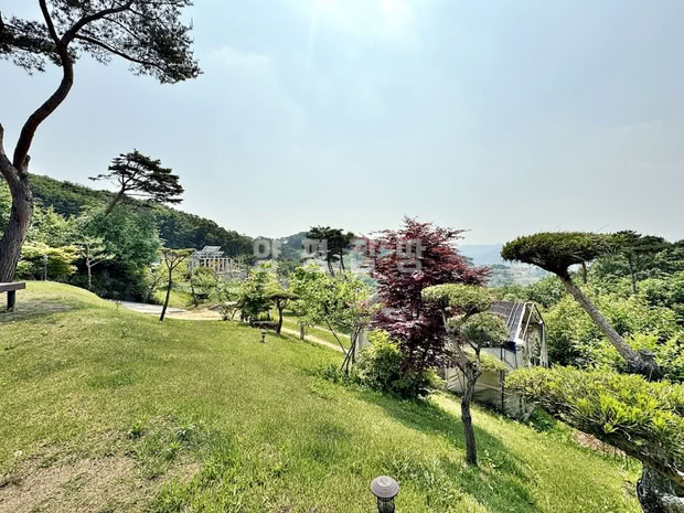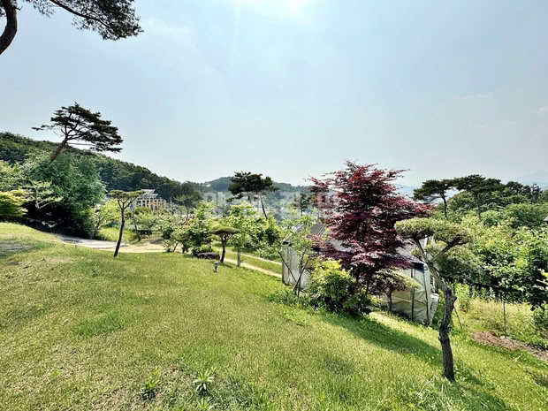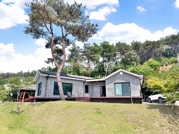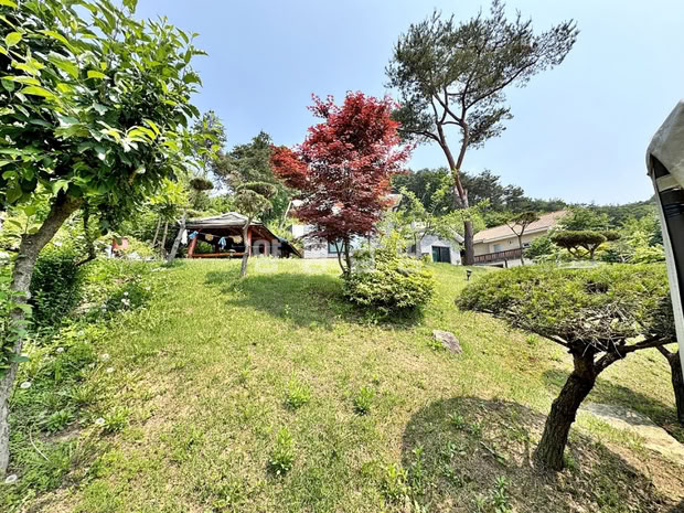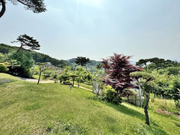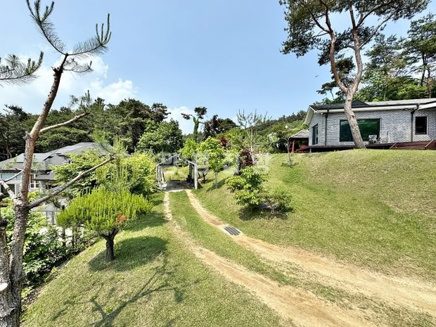 대지 전면에는 완경사의 넓은 잔디마당이 펼쳐져 있으며, 정자와 데크, 다양한 수목이 어우러져 사계절 경관을 즐길 수 있습니다.