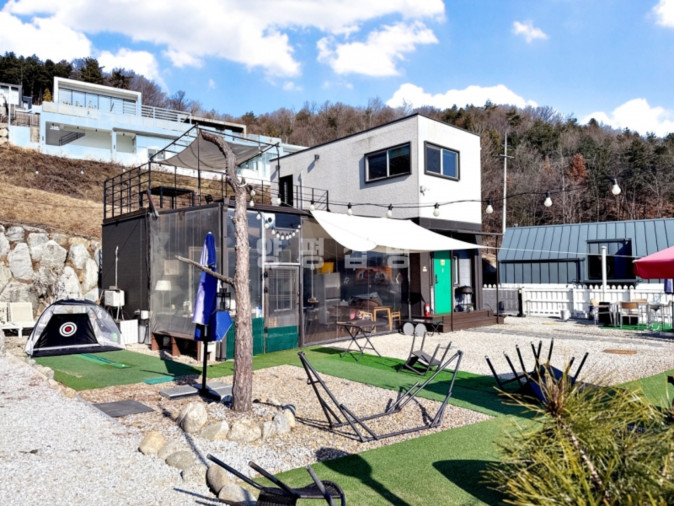2층 구조의 미국식 목조주택으로, 개방감 있는 거실과 아늑한 침실 배치가 돋보이며, 데크와 인조잔디 마당이 여유로운 야외 생활을 가능하게 합니다.