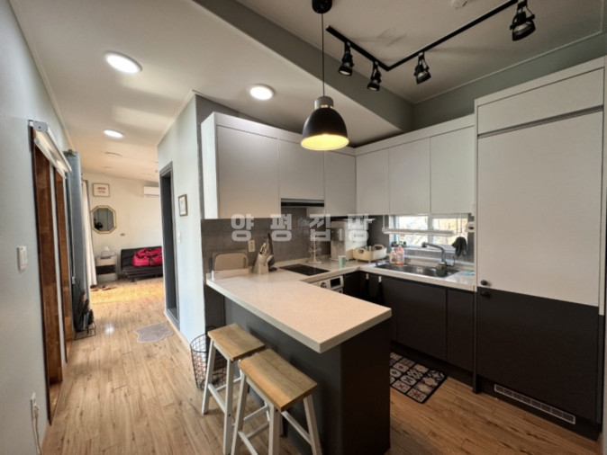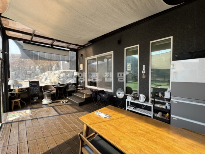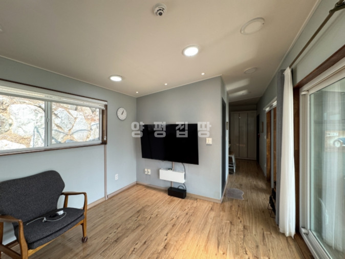 대문 안쪽 주차 공간과 목재 펜스, 철제 대문이 어우러져 프라이버시와 안전성을 동시에 갖추었으며, 광주원주고속도로 동양평IC와 중앙선 양동역이 가까워 도심 접근성이 뛰어납니다.