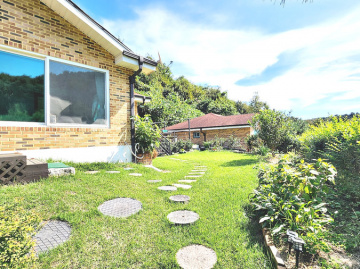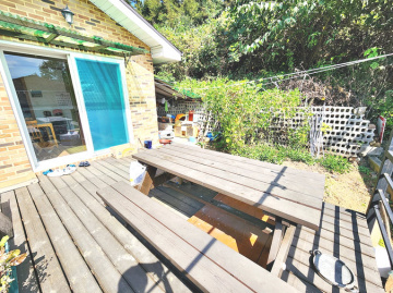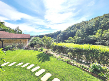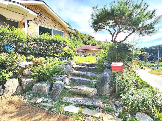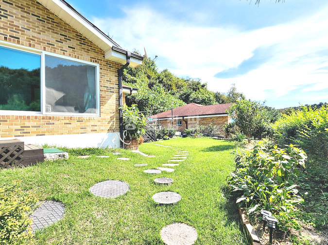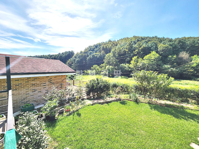 마당에는 잔디와 조경수, 원목 데크, 화단, 텃밭이 어우러져 전원생활의 여유로움을 즐기기에 충분합니다.