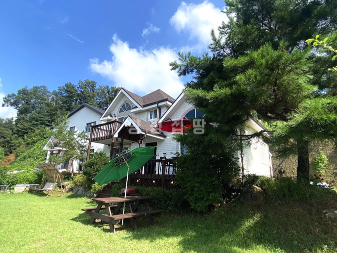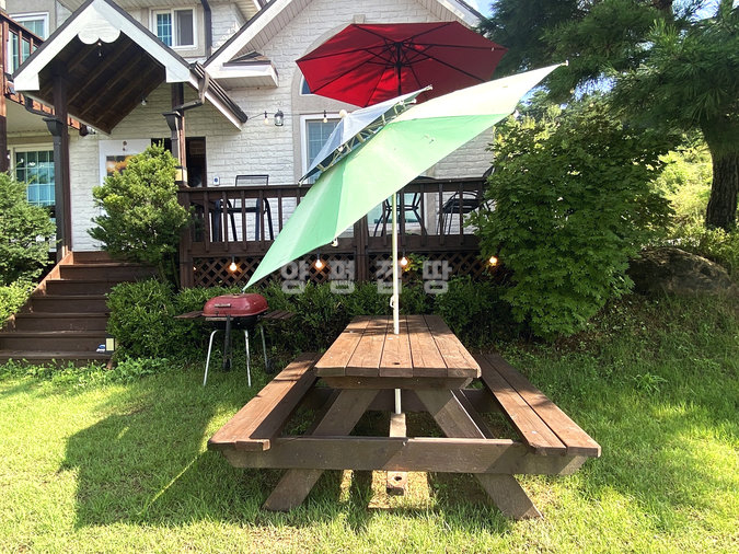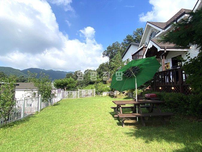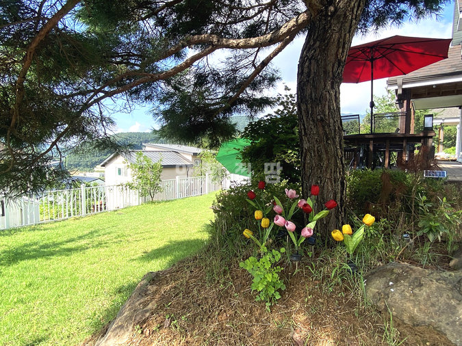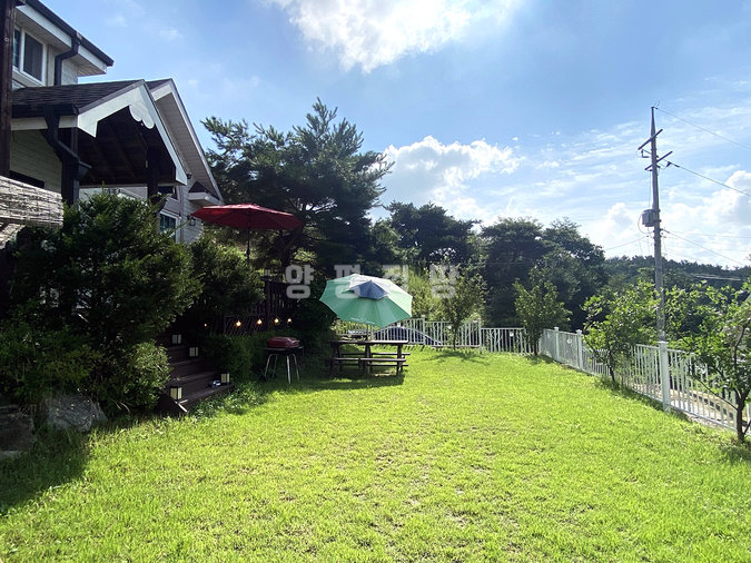 넓은 잔디마당과 데크, 바비큐 시설과 야외 그네 등 다양한 야외 공간이 조성되어 있어 여유로운 생활을 누릴 수 있으며, 조경과 외부 시설 관리 상태가 우수해 깔끔한 인상을 줍니다.