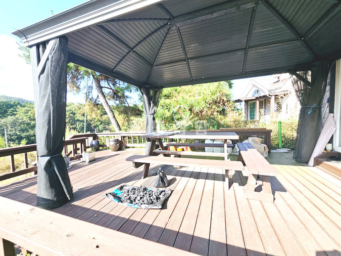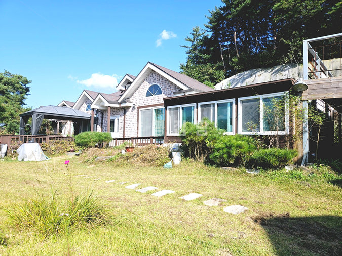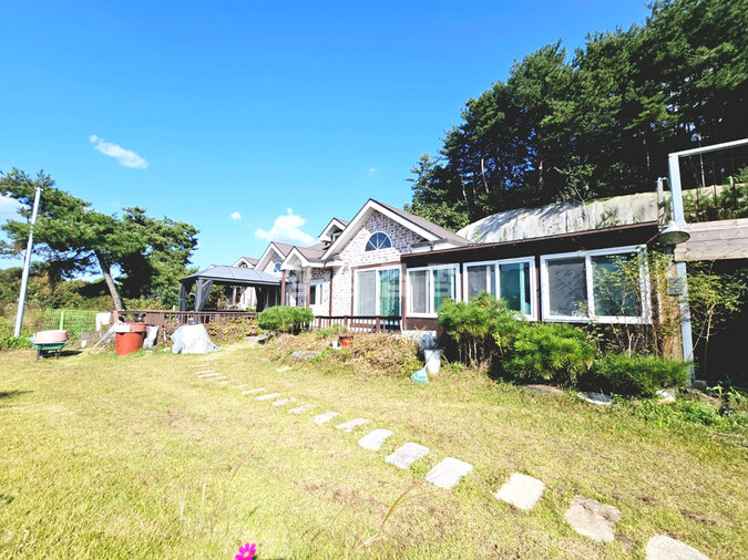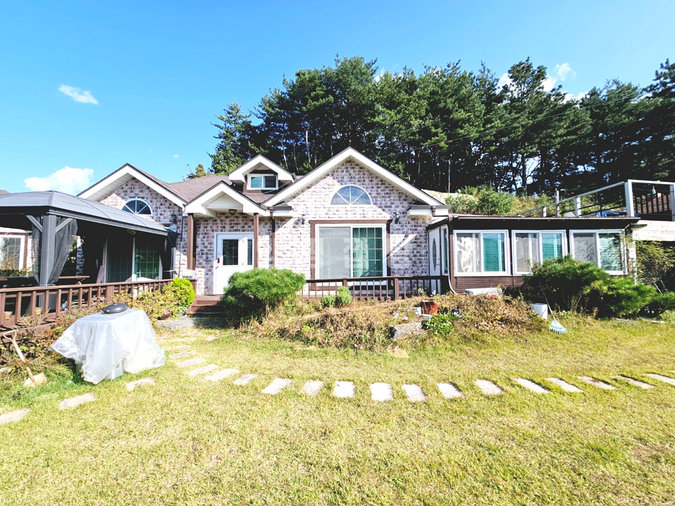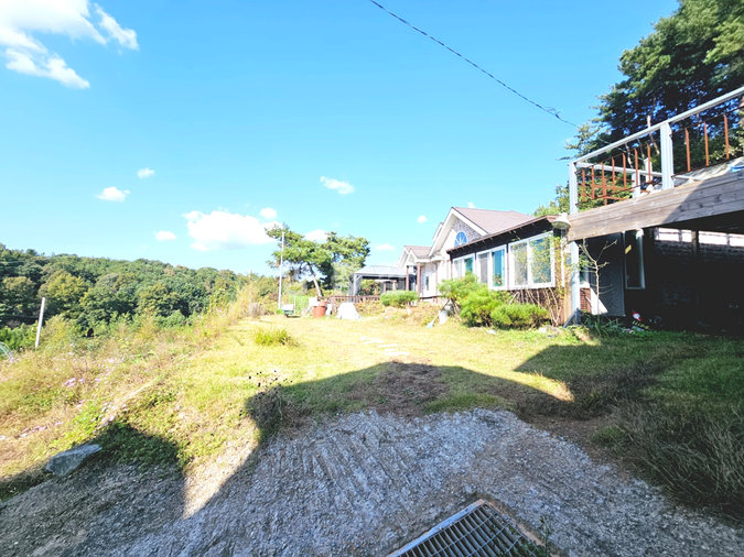 잔디마당과 소담한 텃밭, 그리고 데크와 디딤석으로 꾸며진 정원은 생활의 여유를 선사하며, 수돗가와 주차공간까지 갖춰 실용성 또한 놓치지 않았습니다. 주변에는 외지인 마을이 형성되어 있어 이웃과의 정을 나누며 살아가기 좋은 전원주택으로, 아늑한 느낌이 돋보이는 주거 공간입니다.