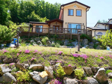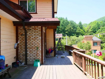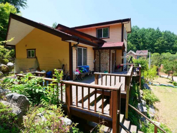 본 전원주택은 마을에서 한층 높게 자리하여 탁 트인 조망을 누릴 수 있는 점이 큰 매력입니다. 목조 구조로 지어져 따뜻한 분위기를 주며, 방 세 칸과 욕실 두 칸이 갖춰져 있어 가족 단위 거주에 충분한 공간을 제공합니다.