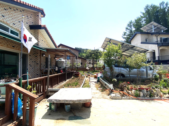 넓은 마당에는 잔디와 화단, 텃밭, 목재 데크가 어우러져 있고, 태양광 시설을 이용해 관리비 절감 효과도 있습니다. 인근에 면사무소, 터미널, 학교와 같은 생활시설이 가까이 있어 도보나 차량으로 손쉽게 접근할 수 있는 실속 있는 전원주택입니다.