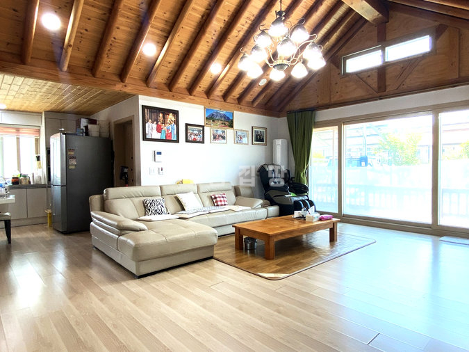 목조 구조의 단층 주택으로 지어져 단열성이 좋고 겨울철에도 따뜻합니다. 실내는 거실과 주방, 다용도실, 방 두 개와 욕실로 구성되어 있어 실거주에 알맞으며, 붙박이장과 생활 가전도 함께 제공 가능합니다.