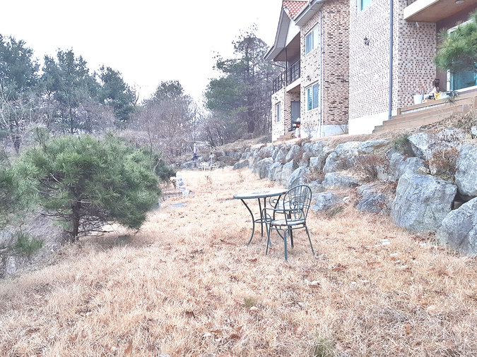 정원은 잔디와 조경수, 텃밭이 어우러져 있어 사계절 내내 자연의 변화를 가까이에서 즐길 수 있고, 단차를 살린 배치가 입체감을 주어 개방적인 느낌을 줍니다. 마을 안쪽에 위치하지만 도로 접근성이 좋아 실거주용 주택을 찾는 분께 이상적인 매물입니다.