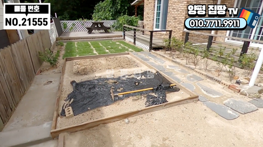 마당은 잔디와 텃밭, 화단으로 꾸며져 있으며 목재 데크와 주차 공간이 마련되어 있습니다. 주방은 아일랜드 식탁이 설치되어 실용적이며, 안방에는 붙박이장이 설치되어 있어 수납에 편리함을 더했습니다.