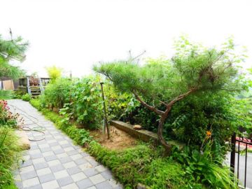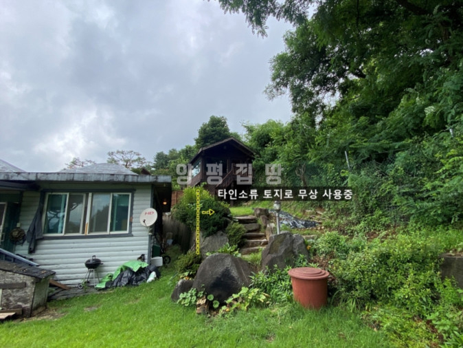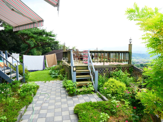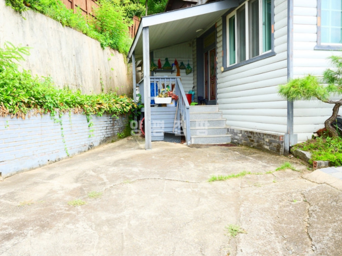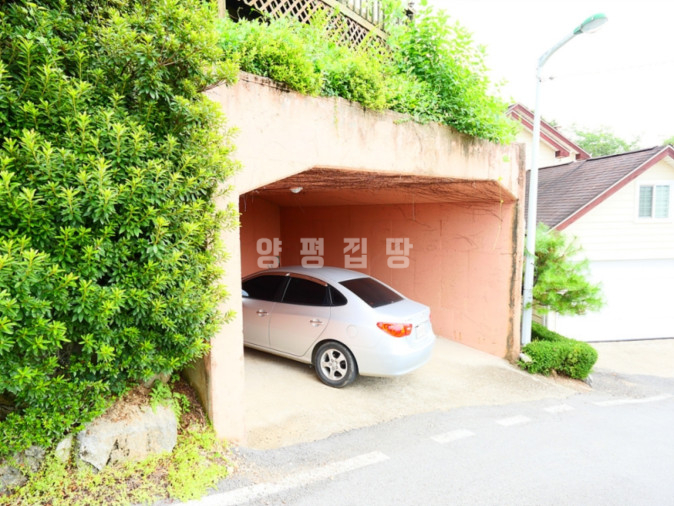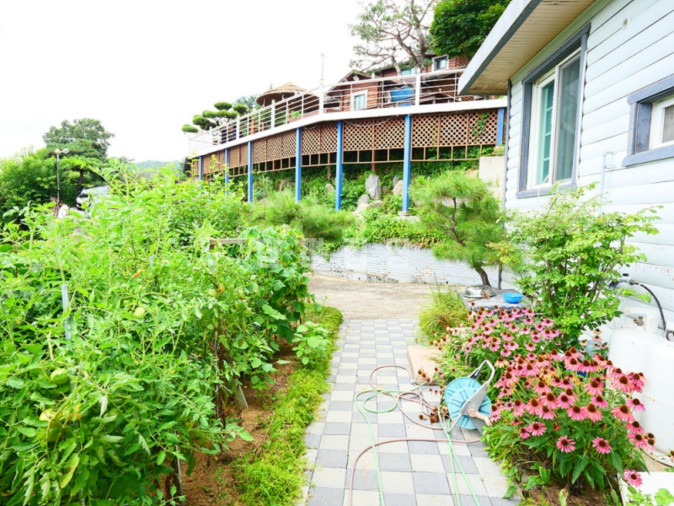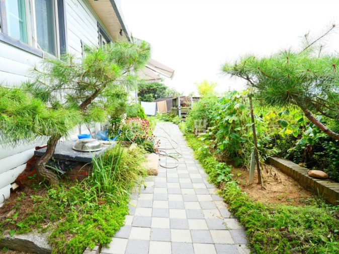 외부에는 잘 관리된 잔디마당과 텃밭, 조경수들이 조화를 이루고 있으며, 주차박스를 포함해 최대 세 대까지 주차가 가능한 여유로운 공간을 제공합니다. 또한 상수도와 오수관로를 사용하여 생활 편의성을 높인 것이 특징입니다.