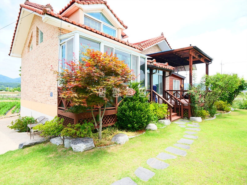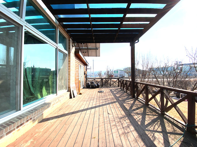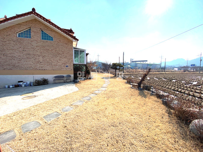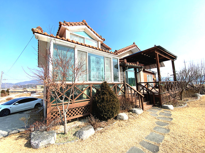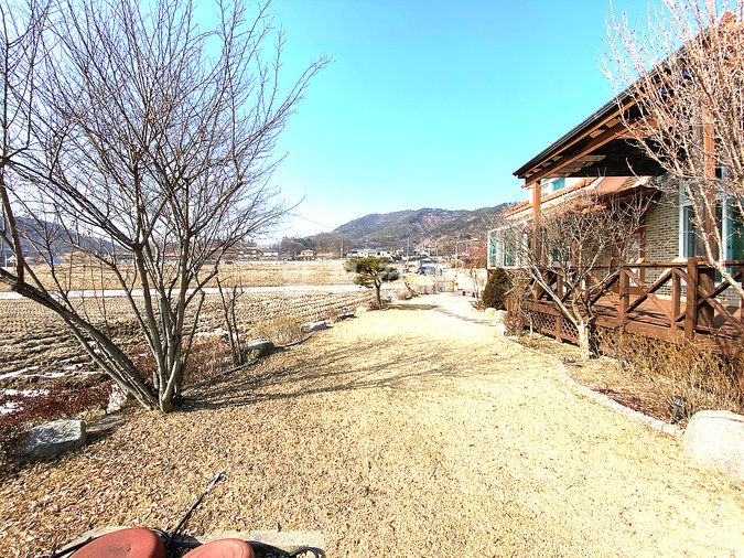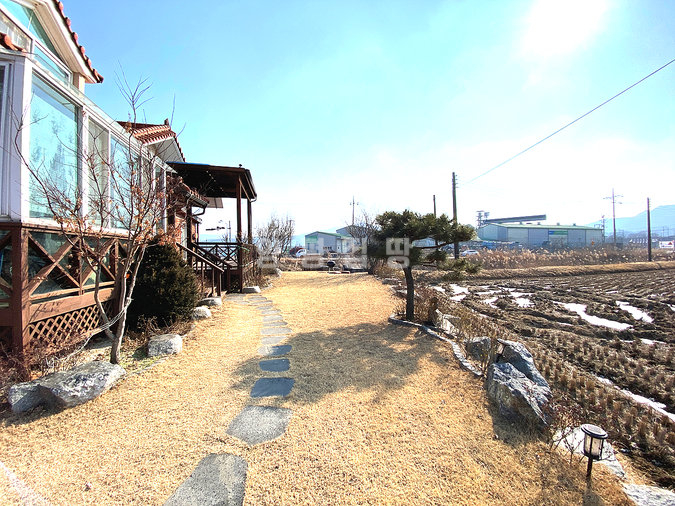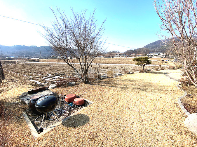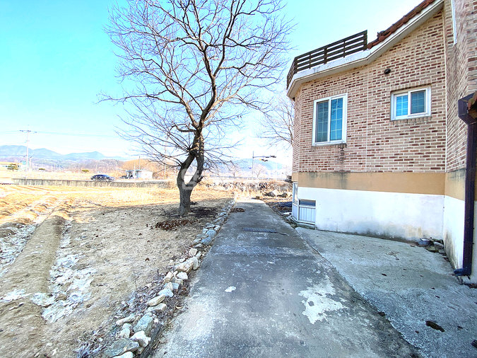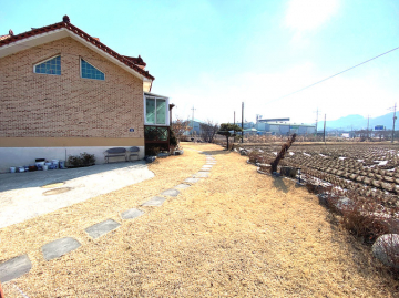 마당에는 잔디와 조경수, 디딤돌이 어우러져 있으며 넓은 데크와 주차공간이 마련되어 있습니다. 태양광 설비가 설치되어 있어 유지 관리에도 장점이 있으며, 송현천과 접해 있어 자연을 가까이에서 누릴 수 있습니다. 교통과 생활, 자연환경을 모두 갖춘 본 전원주택은 안정적인 생활과 여유로운 전원생활을 동시에 실현할 수 있는 매물입니다.