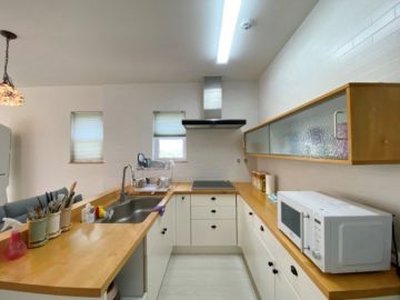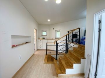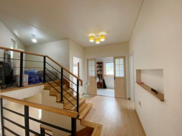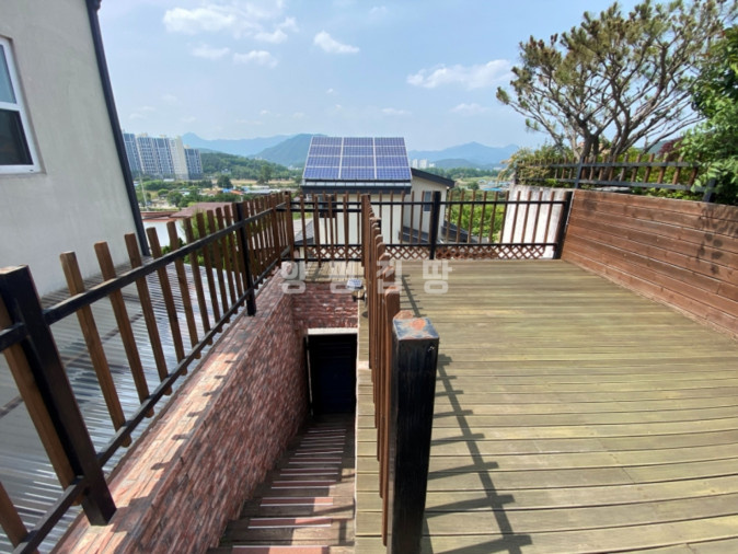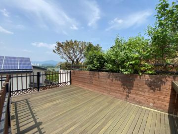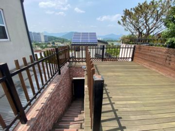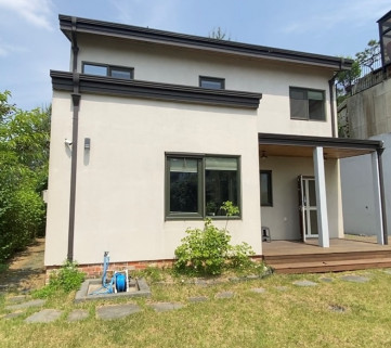 목조 구조로 지어진 본 주택은 친환경적이고 포근한 특성이 돋보이며, 1층에는 거실과 주방, 욕실이 있고 2층에는 침실 3개와 욕실이 마련되어 가족 생활에 충분한 공간을 제공합니다. 마당에는 잔디와 데크, 디딤석, 주차박스와 소규모 텃밭 공간이 조성되어 있습니다.