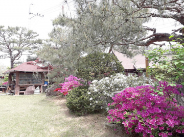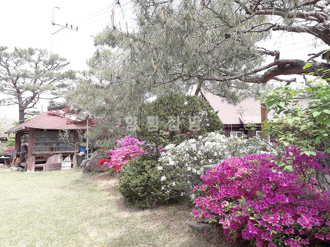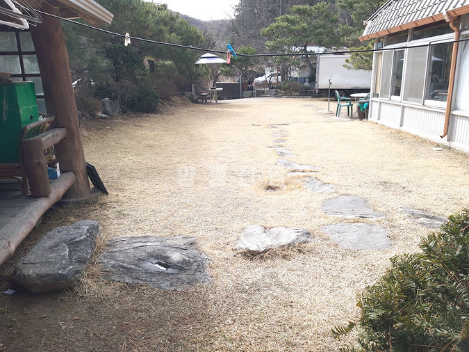정원은 여러 정원수와 잔디마당이 어우러져 있으며, 정자와 화단, 소나무와 철쭉 등이 조성되어 있습니다. 넓은 텃밭과 야외 수돗가도 있어 농가주택의 실용성을 잘 보여줍니다. 국토부 도로를 정원으로 사용할 수 있는 허가가 내려진 점 또한 매력적인 부분입니다.