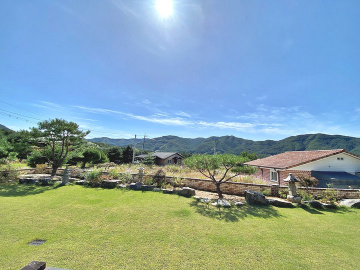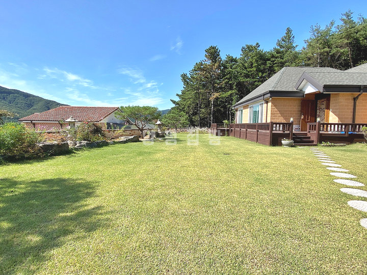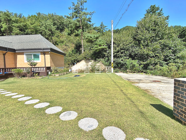 마당은 넓은 잔디와 텃밭, 조경수와 디딤석으로 꾸며져 있어 사계절 내내 쾌적합니다. 전면 데크 공간도 시공되어 있어 여유로운 야외 생활이 가능하며, 주차공간은 2대가 마련되어 있습니다. 본 황토주택은 친환경 자재를 활용한 건강한 생활을 원하는 분들께 추천드릴 만한 매물입니다.