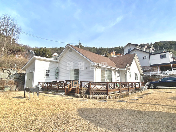 본 전원주택은 양평군 옥천면 신복리에 자리잡은 단층 구조의 남향 주택입니다. 하루 종일 햇살이 머무는 밝은 분위기와 앞을 가리지 않는 시원한 조망이 돋보입니다. 마당에는 소나무와 조경수가 심어져 있으며, 넓은 잔디와 정원 한켠의 텃밭이 생활의 여유를 더해줍니다. 주택 전면과 측면 데크는 활용도가 높아 가족과 함께 여유로운 시간을 보내기에 좋습니다.