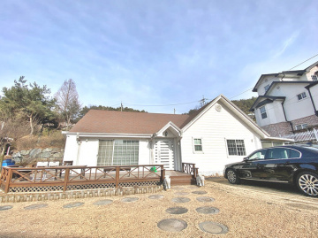 구조는 목조로 지어져 단열이 우수하고 지진에 강한 장점을 지니며, 거실과 주방이 오픈형으로 연결되어 넓고 개방감이 있습니다. 침실 3개와 욕실 2개로 가족 생활에 적합하고, 리모델링을 거쳐 현재도 주말주택으로만 사용되어 사용감이 적습니다. 전기판넬 난방과 심야전기 보일러를 갖추고 있어 실내 생활도 안정적입니다.