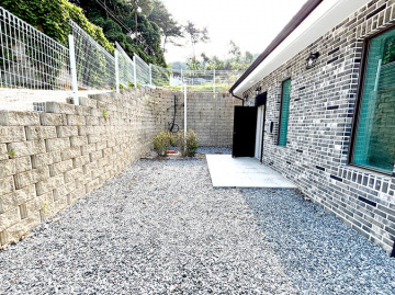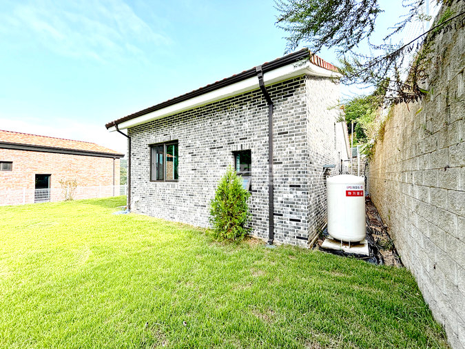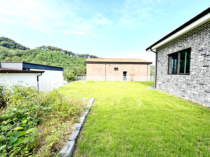 대지 약 188평 규모의 마당은 잔디와 디딤석, 정원수가 조화를 이루며 작은 텃밭과 원목 데크까지 마련되어 있습니다. 전원생활의 여유로움을 즐기기에 충분한 공간이며, 외부는 깔끔하게 정리되어 관리가 편리합니다.