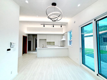 주택은 보전관리지역에 속하며, 북서향 조망으로 트인 전망을 확보했습니다. 버스정류장이 1.3km, 용문역이 약 6km 거리에 위치해 대중교통 접근도 가능하며, 서울까지는 약 60분 정도 소요됩니다. 신축의 안정감과 전원의 쾌적함을 모두 원하는 분들께 추천할 만한 주택입니다.
