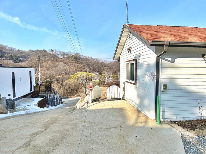 본 전원주택은 양평군 용문면 망능리에 위치해 있으며, 용문산의 산세를 시원하게 담아내는 조망이 인상적인 주택입니다. 서향으로 배치되어 하루 종일 따뜻한 햇살이 머무는 구조이며, 조용하고 단정한 마을 안쪽에 자리해 프라이빗한 분위기를 느낄 수 있습니다.