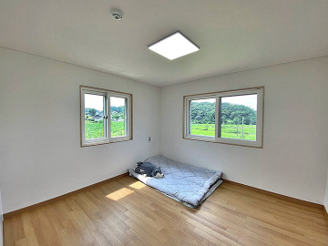 목조로 지어진 본 주택은 설계에 제약이 적고 내진 설계에 강해 안정적인 구조를 자랑합니다. 남서향으로 따뜻하고 환한 햇살이 집안 가득 머물고, 깔끔한 흰색 벽과 커다란 창문으로 쾌적한 실내 환경을 조성했습니다. 1층과 2층에 분리된 공간이 있어 효율적인 동선이 돋보입니다.