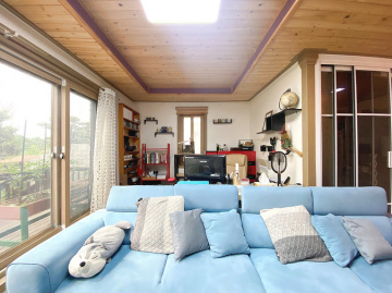 주택은 견고한 조적조(벽돌조) 구조로 지어져 내구성이 뛰어나며, 푸른 잔디마당과 텃밭 공간, 데크가 깔끔하게 잘 관리되어 있습니다. 별도로 컨테이너가 마련되어 있어 수납 공간으로 활용하기 좋습니다. 태양광 시설이 설치되어 있어 전기료 절감 효과도 누릴 수 있습니다.