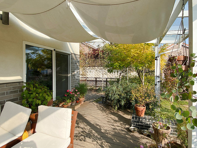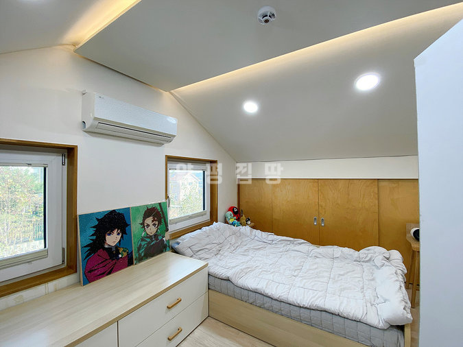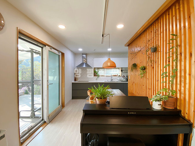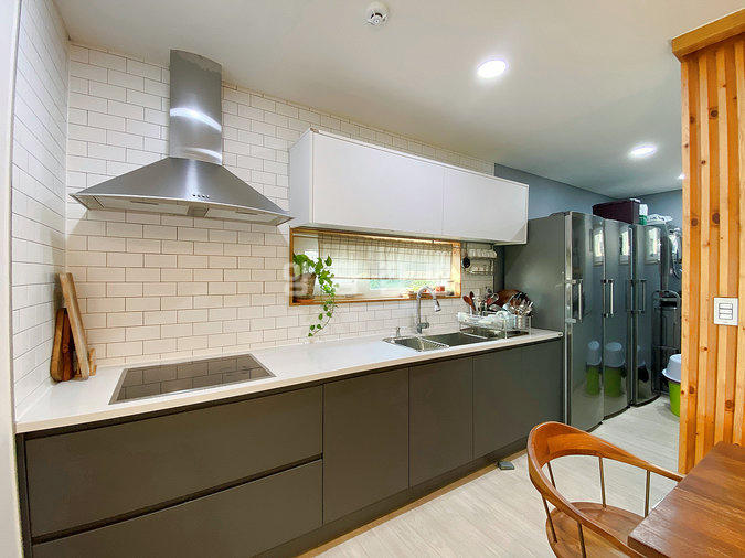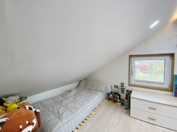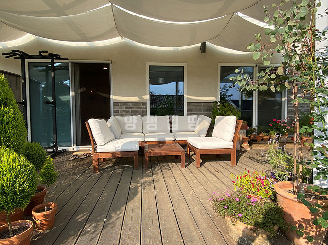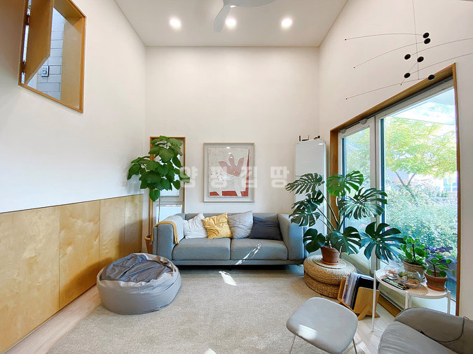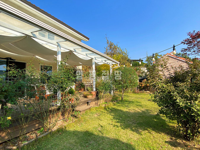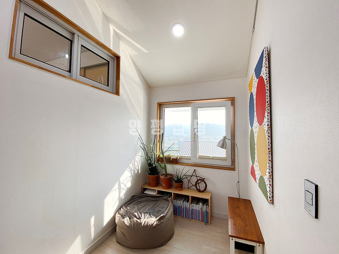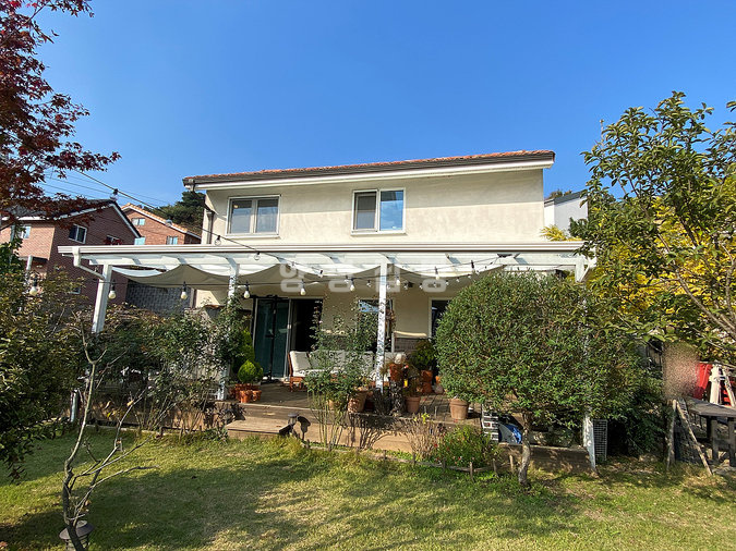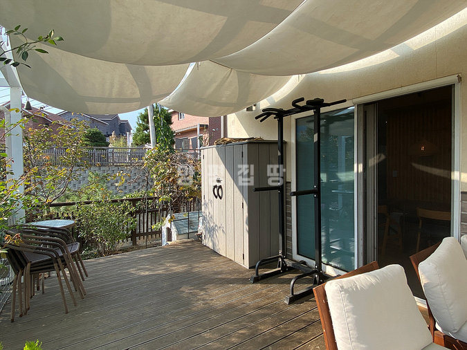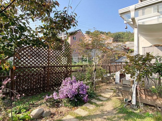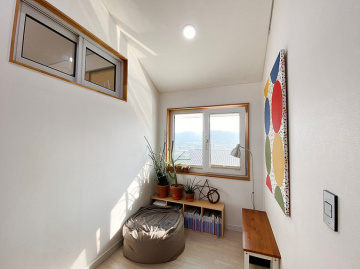 남향으로 풍부한 일조량을 자랑하며, 마을과 산이 보이는 시원한 조망을 확보하고 있습니다. 목조주택의 따스하고 포근한 느낌을 그대로 살려, 실내 어디서든 햇살을 느낄 수 있습니다. 정원 관리가 편리한 자갈 마당과 데크, 텃밭 공간이 마련되어 있으며, 차고 외에 2대 추가 주차가 가능해 주차 공간이 넉넉합니다.