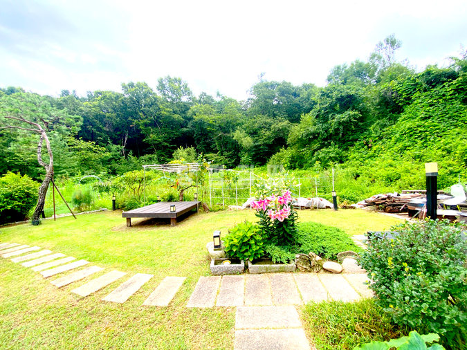 강하면 전수리에 위치한 본 전원주택은 조용하고 쾌적한 자연환경을 갖추고 있습니다. 목조주택 특유의 아늑함과 우수한 에너지 효율을 자랑하며, 북동향으로 앉아 있어 앞이 가려지지 않는 시원한 전망을 감상할 수 있습니다. 넉넉한 대지 위 넓은 잔디마당과 텃밭 공간은 여유로운 전원생활을 가능하게 합니다.