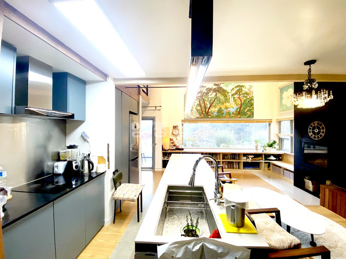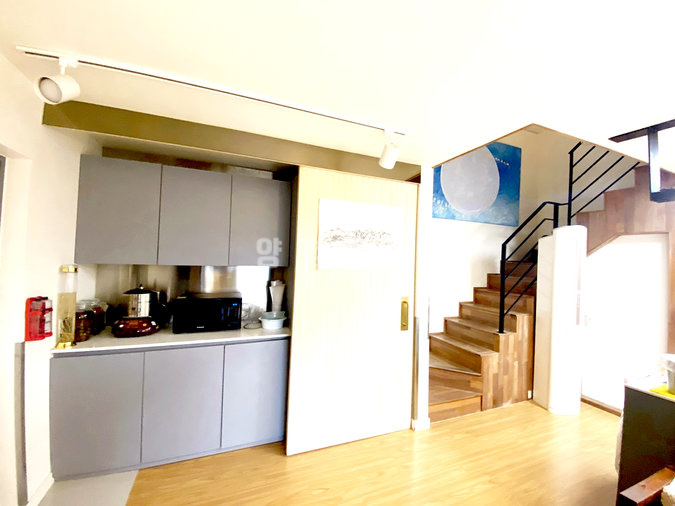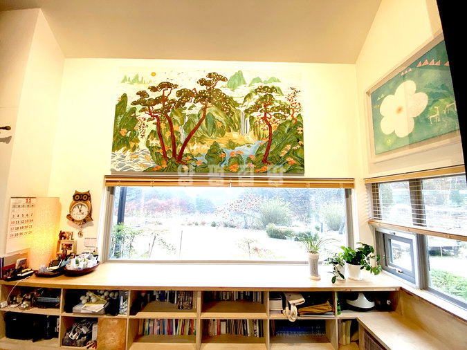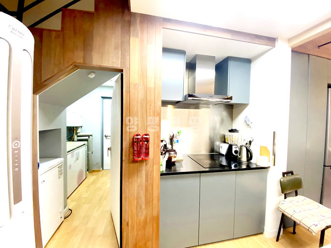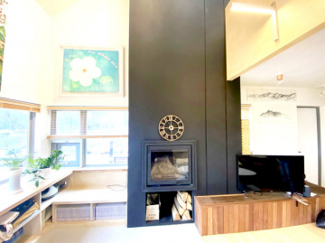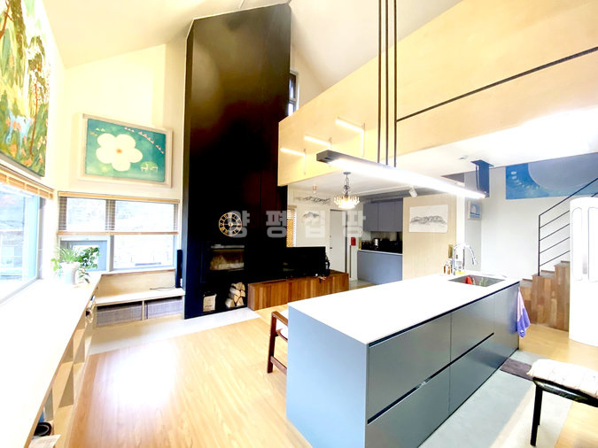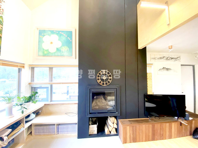 주택 내부는 1층과 2층에 거실과 주방이 각각 있어 두 세대가 거주하기에 좋은 구조입니다. 복층형 거실의 높은 층고와 긴 창은 개방감을 주며, 벽난로가 설치되어 있어 겨울철 따뜻한 분위기를 더합니다. 태양광 시설이 설치되어 난방비 부담을 덜어주며, 붙박이장, 에어컨, 세탁기, 냉장고 등 다양한 옵션이 갖춰져 있어 생활이 편리합니다.