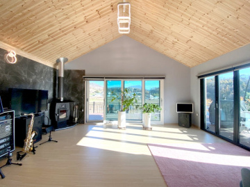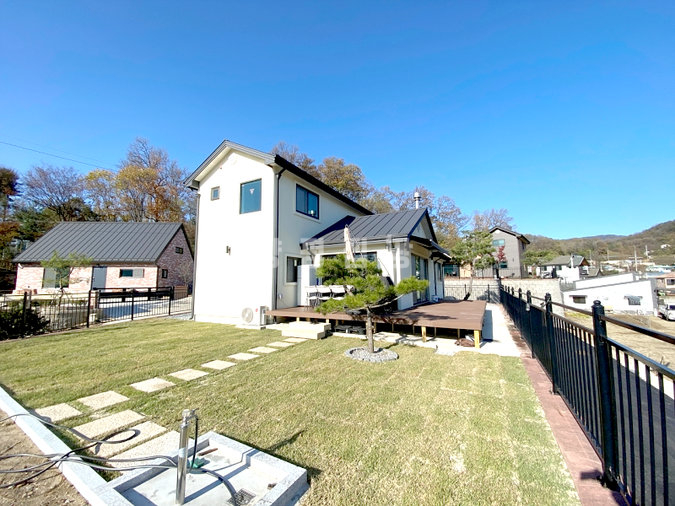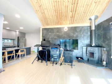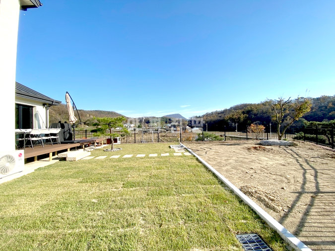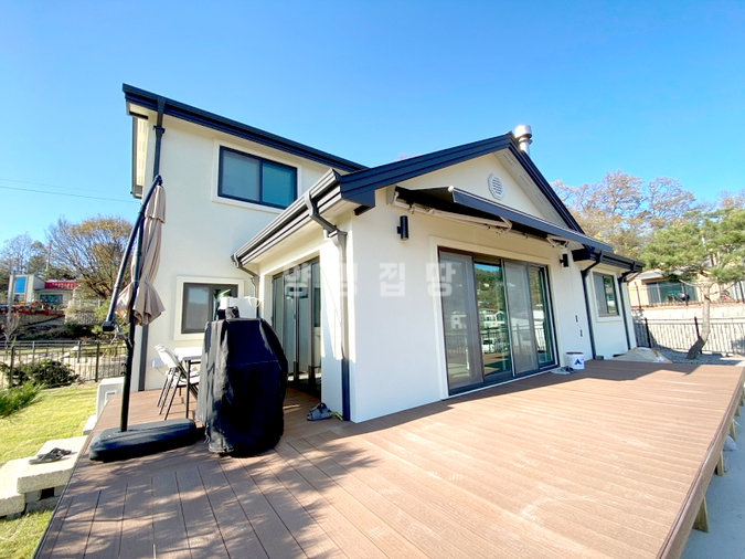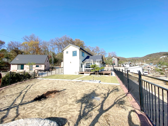 내부는 개방감을 살린 구조로 설계되었으며, 방 3개와 욕실 2개를 갖추고 있어 공간 활용이 뛰어납니다. 거실에 벽난로가 있어 겨울철 운치를 더할 수 있습니다. 넓은 잔디마당과 데크, 그리고 약간의 텃밭 공간까지 마련되어 있어 야외 활동을 즐기기에도 좋습니다.