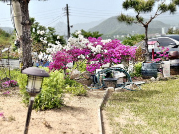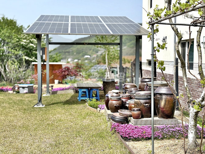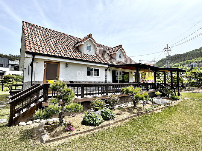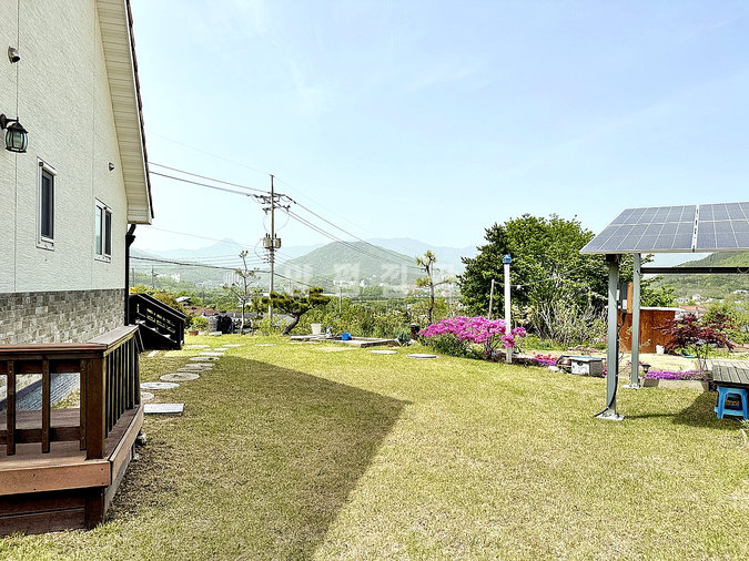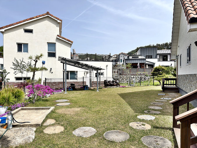 푸른 잔디가 깔린 아기자기한 정원에는 텃밭이 조성되어 전원생활의 즐거움을 더해줍니다. 더불어, 태양광 발전기 설치가 예정되어 있어 전기료 절감 효과도 기대할 수 있습니다.