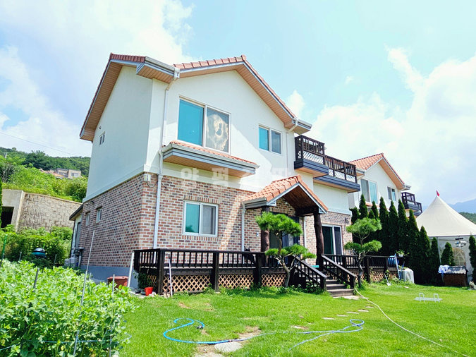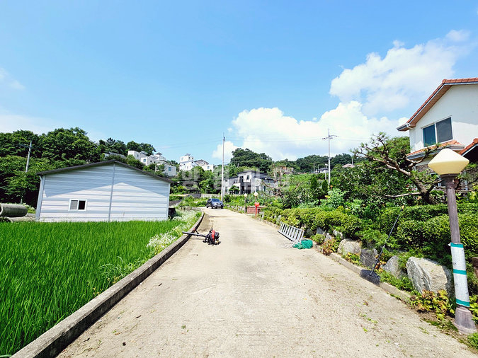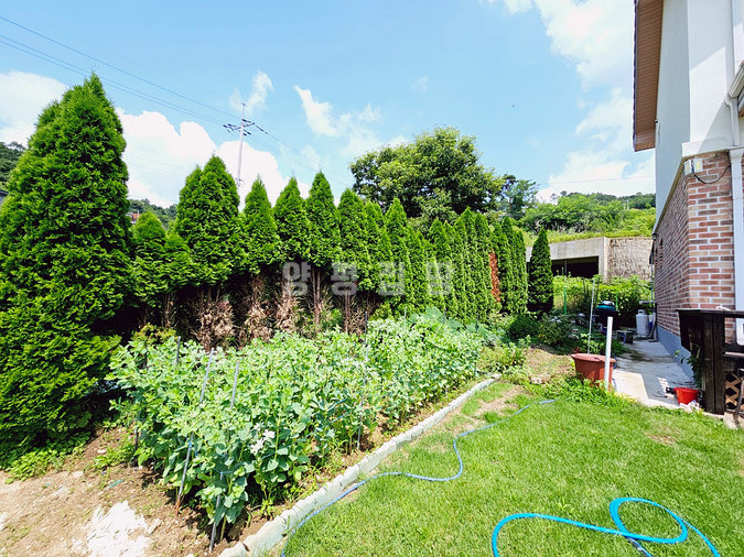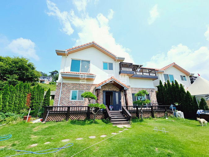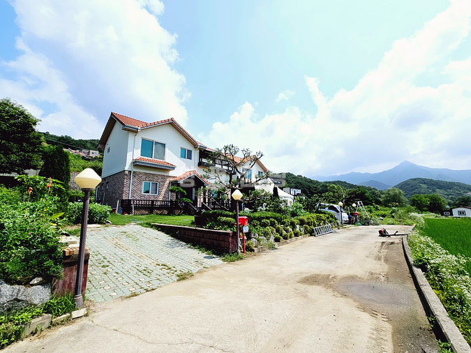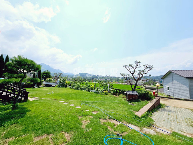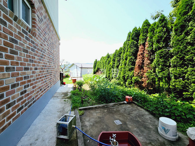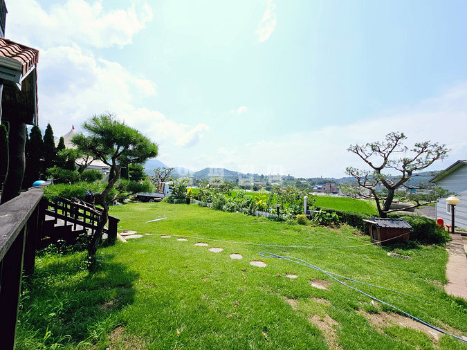 차량 접근이 편리한 4m 포장도로에 접해 있어, 처음 방문하는 사람도 어렵지 않게 찾아올 수 있습니다. 마당엔 푸른 잔디가 넓게 펼쳐져 있고, 디딤돌과 데크, 조경수들이 자연스럽게 어우러져 있어 마치 작은 정원 속에 들어선 느낌을 줍니다.
