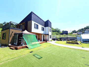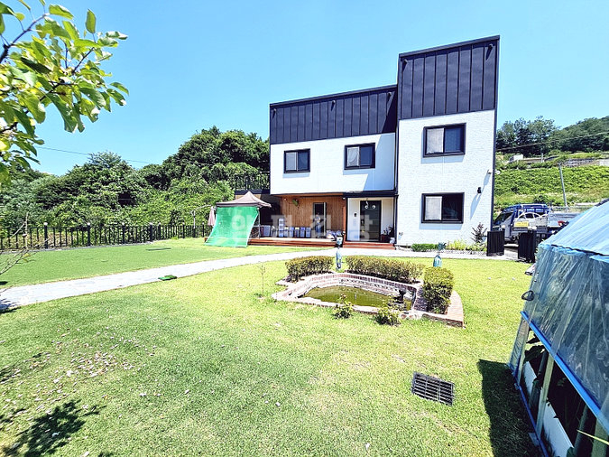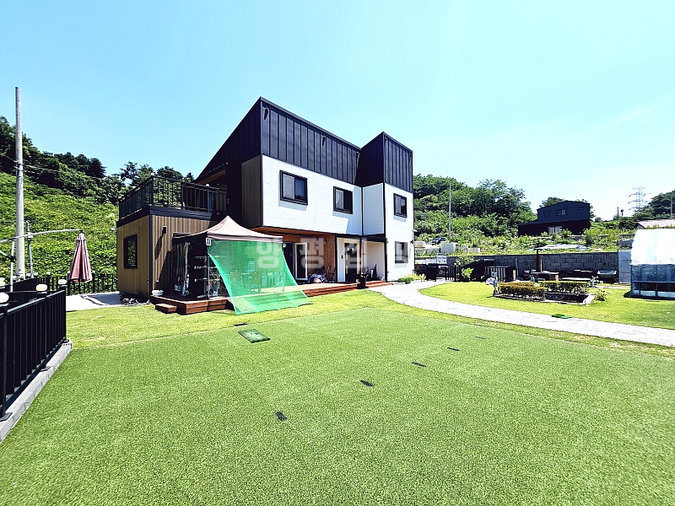 미국식 목조 구조로 지진에 강하고 구조 변경이 자유로우며, 2층 거실에는 폴딩도어와 간이 싱크대, 안방에는 드레스룸이 설치되어 실용성과 감성을 모두 갖췄습니다. 시스템 에어컨 5대, 붙박이장, 데크, 평잔디, 연못, 화덕, 비닐하우스 등 옵션도 풍부합니다.