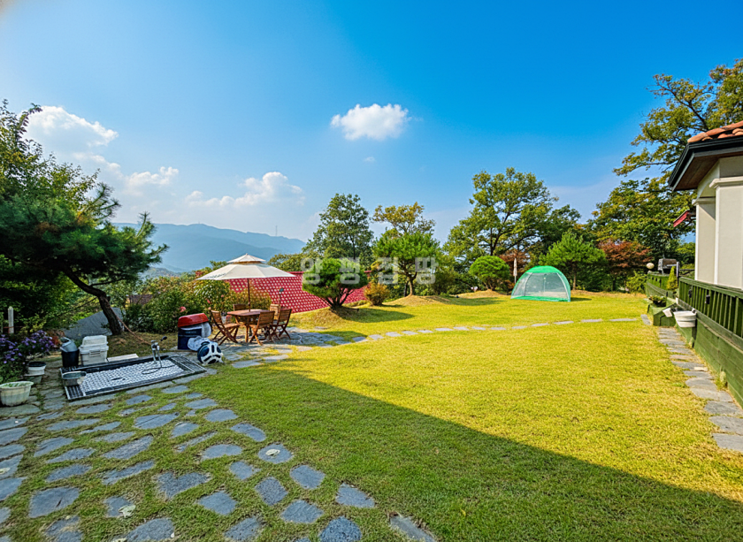 외부는 넓은 잔디마당과 디딤돌 포인트, 데크와 파고라가 어우러져 있으며, 정원은 펜스와 조경수로 깔끔하게 마무리되었습니다. 에어컨 4대, 전동어닝, 전기차 충전기, CCTV 등 다양한 옵션이 갖춰져 있어 생활 편의성이 높습니다.