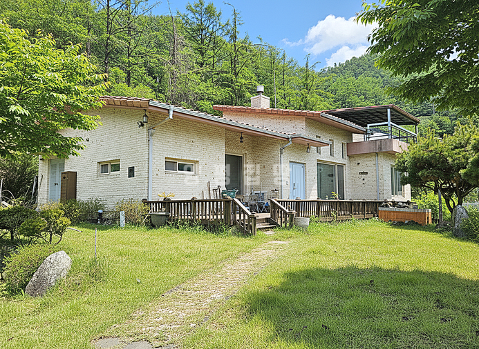 잔디와 조경수가 어우러진 마당에는 야외수도와 텃밭 공간이 마련되어 있어 자연을 가까이 느낄 수 있습니다. 인근에 생활 편의시설이 위치해 실거주에 적합하며, 서울 잠실까지 약 50분 소요되어 출퇴근도 무리가 없는 입지를 자랑합니다. 조용하고 맑은 공기를 품은 웰빙 마을 속에서 안정적이고 쾌적한 전원생활을 누릴 수 있는 주택입니다.