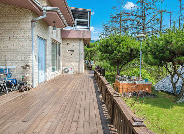 건물은 철근콘크리트 구조로 지어져 내구성이 뛰어나고 안정성이 돋보입니다. 거실에는 벽난로가 있어 겨울철 따뜻한 분위기를 더하며, 붙박이장이 설치된 실내는 효율적인 수납공간을 제공합니다. 또한 거실 층고가 높아 개방감이 우수하며, 데크와 옥상 차양막 등 외부 공간 활용성도 높습니다.