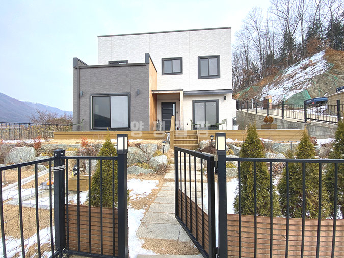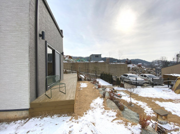 남서향 배치로 햇살이 잘 들며, 푸른 잔디마당과 목재 데크, 미니 텃밭과 주차공간까지 마련되어 있어 전원 속 여유로운 생활을 즐길 수 있습니다. 단차를 둔 마당과 경계 휀스가 조성되어 안정감 있는 공간 활용이 가능합니다.