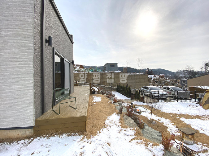 본 전원주택은 양평군 양서면 증동리에 위치하여 국수역에서 차량으로 약 5분 거리에 자리하고 있습니다. 마을과 산세가 시원하게 펼쳐지는 위치로, 전원생활을 누리면서도 교통 접근성이 좋아 실거주지로 손색이 없습니다.