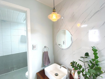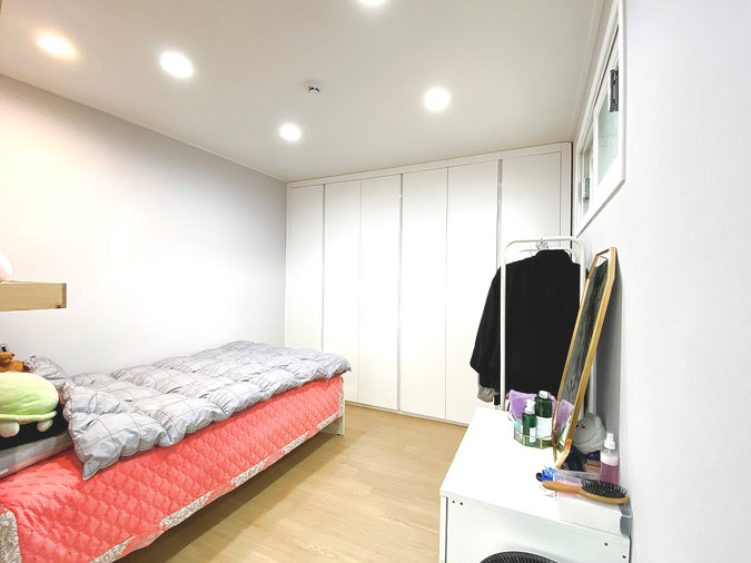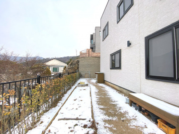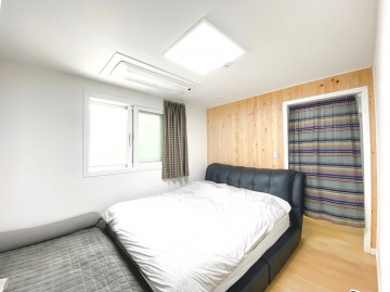 주택은 목조 구조로 지어졌으며, 내부는 1층에 거실, 주방, 방과 욕실 2개, 다용도실이 배치되어 있고 2층에는 방 3개와 욕실, 작은 거실이 있습니다. 각 방과 주방에는 시스템에어컨이 설치되어 쾌적한 주거환경을 제공합니다. 특히 1층 방에는 드레스룸과 히노끼욕조가 마련되어 있어 생활의 품격을 더합니다.