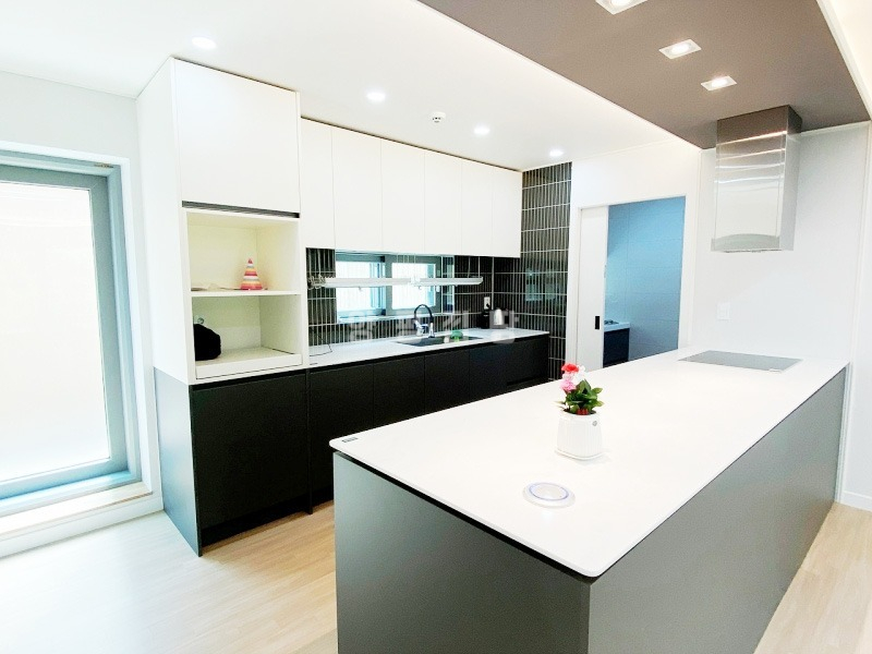 철근콘크리트 구조로 지어진 이 주택은 채광을 극대화한 서남향 창과 남쪽 매스에 배치된 거실·주방이 특징이며, 손님 접대와 거주 공간이 분리되어 실용성과 프라이버시를 동시에 만족시킵니다. 시스템에어컨과 붙박이장 등 생활 편의시설도 갖추어져 있습니다.