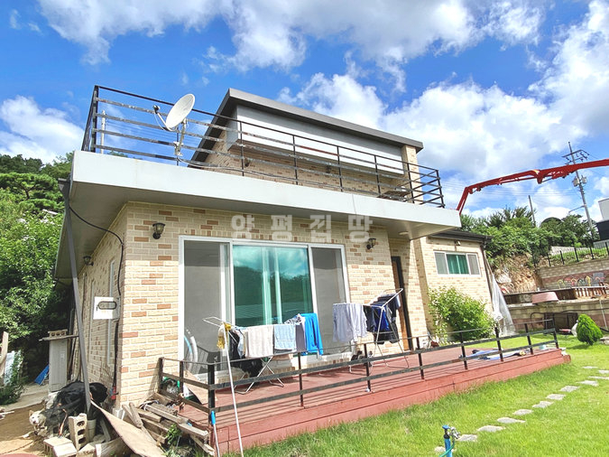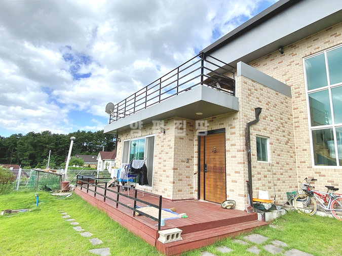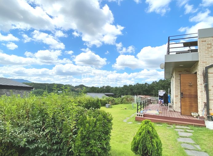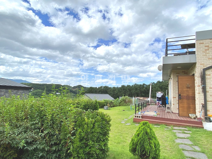 넓은 잔디정원은 소나무와 다양한 조경수로 풍성하게 꾸며져 있어 사계절의 변화를 한눈에 느낄 수 있습니다. 주택 내부는 1층에 거실과 주방, 침실 2개, 욕실 2개가 배치되어 있으며, 2층에는 침실과 욕실, 넓은 베란다가 있어 활용도가 높습니다. 실거주와 전원생활을 동시에 만족시킬 수 있는 매물입니다.
