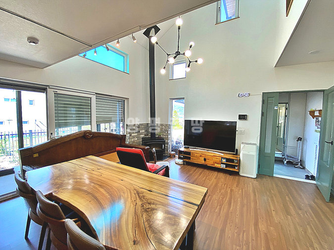 2015년에 준공된 이 주택은 총 건평이 넉넉하여 두 가구가 독립적으로 거주할 수 있을 만큼 실용적으로 설계되었습니다. 목조 구조의 장점을 살려 단열성이 우수하며, 일부 공간에는 시스템에어컨, 벽난로, 썬룸 등 편의시설이 마련되어 생활의 편리함을 높였습니다. 또한 태양광 설비가 적용된 친환경적 요소가 더해져 관리 효율성이 뛰어납니다.