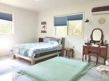 주택은 목조 구조로 지어졌으며, 지열보일러를 갖추어 난방 효율을 높였습니다. 1층에는 거실과 부부침실, 주방과 욕실이 마련되어 있고, 2층에는 거실과 침실 2개, 욕실이 배치되어 있습니다. 여기에 대장에 기록되지 않은 다락공간이 있어 생활 활용도가 더욱 넓습니다.