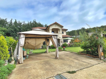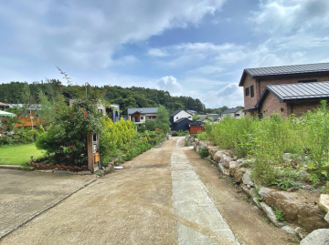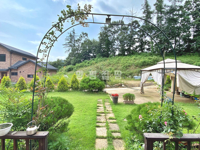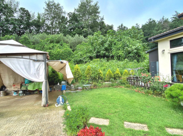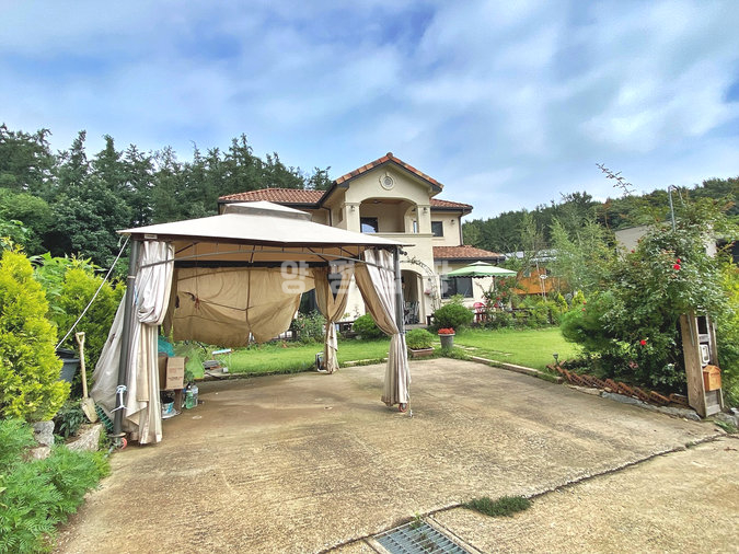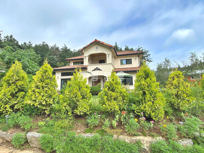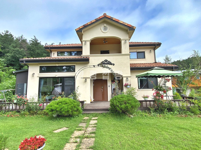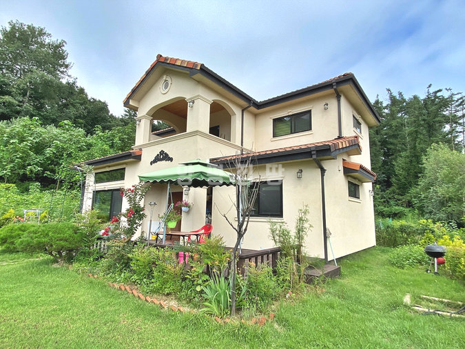 주택은 2019년에 준공된 목조주택으로 2층 구조를 갖추고 있습니다. 1층에는 거실, 주방, 부부 침실, 다용도실, 욕실 2개가 있고, 2층에는 침실 2개, 간이주방, 욕실이 마련되어 있어 가족 생활에 최적화된 동선을 자랑합니다. 한샘 주방과 욕실, 유럽형 기와를 시공해 내외부 마감 상태가 우수하며, 독일식 로이유리 창호를 사용하여 단열 성능도 높였습니다.