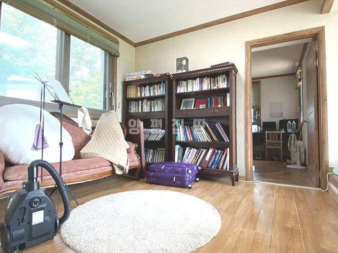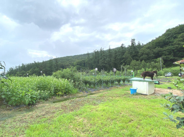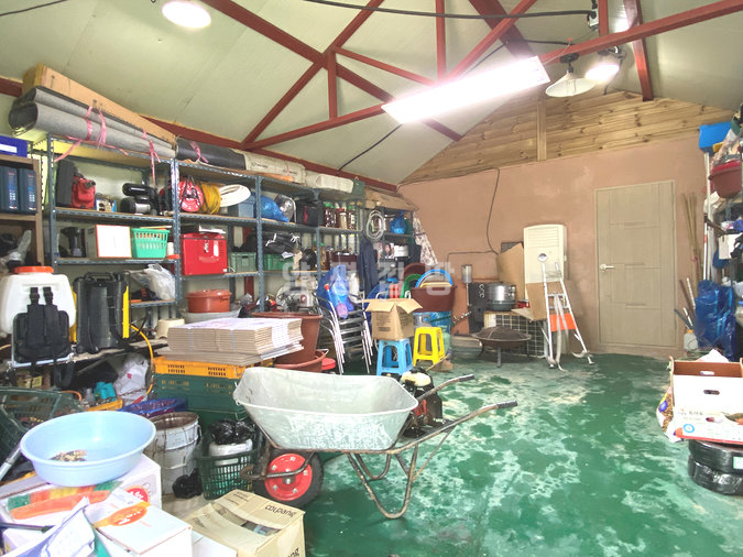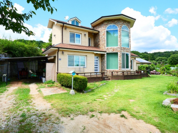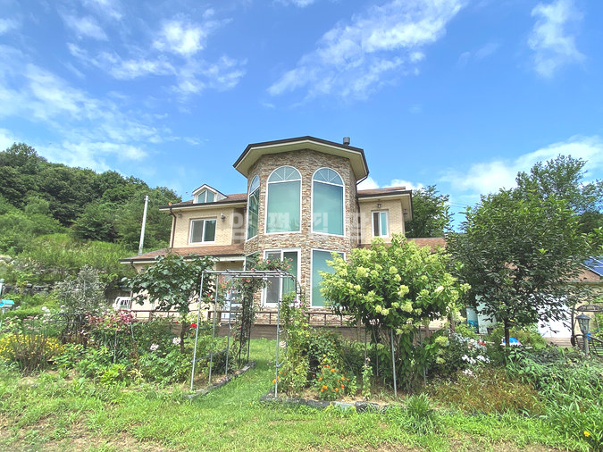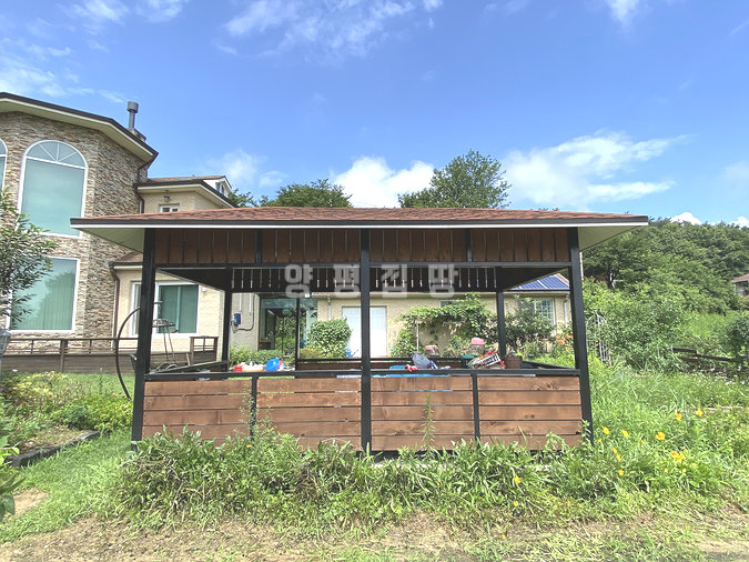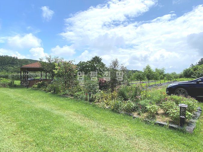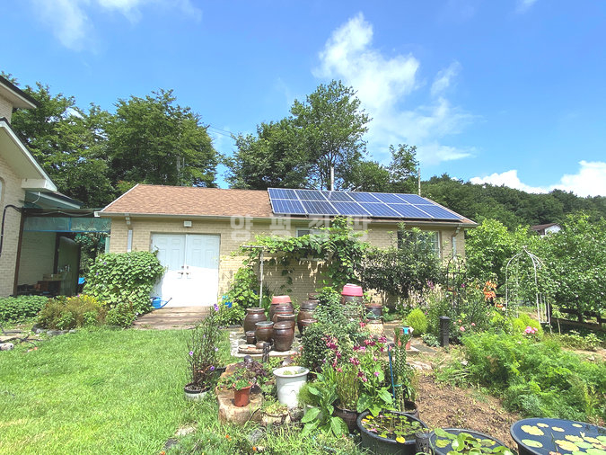 마당은 넓게 펼쳐진 잔디와 정갈하게 조성된 화단, 그리고 디딤돌이 어우러져 단정한 분위기를 제공합니다. 주택 옆과 뒤편으로 창고와 황토방이 마련되어 있어 다양한 활용이 가능하며, 벽난로가 설치된 공간은 겨울철에도 아늑함을 더해줍니다. 또한 태양광과 지열보일러가 설치되어 있어 효율적인 관리와 친환경적인 생활을 지원합니다.