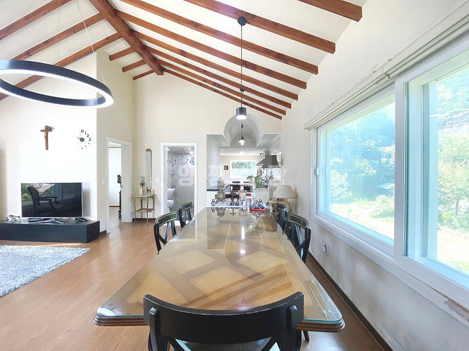 주택은 조적조로 지어져 기초가 탄탄하고 내구성과 내화성이 우수합니다. 벽돌 특유의 견고함이 돋보이며 장기간 안정적인 거주가 가능합니다. 북동향으로 자리 잡고 있어 아침 햇살을 집 안으로 부드럽게 끌어들이며, 거실의 층고가 높아 개방감과 채광이 뛰어납니다.