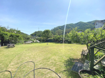 넓은 잔디마당과 잘 관리된 정원이 펼쳐져 있으며, 작은 텃밭과 목재 데크가 있어 전원생활의 여유로움을 더해줍니다. 주변에는 전원주택 단지가 형성되어 있어 이웃과의 교류가 가능하며, 계곡과 등산로가 도보권에 있어 여름철과 주말에 자연을 가까이 즐길 수 있습니다.