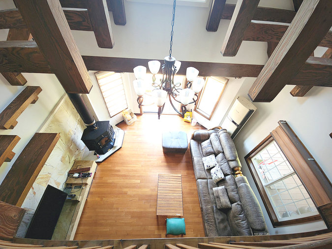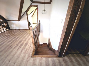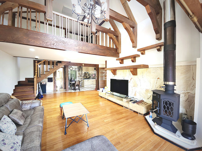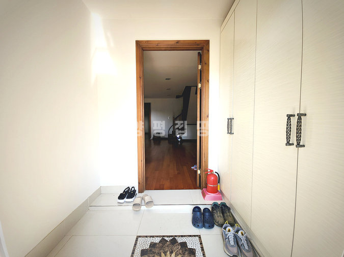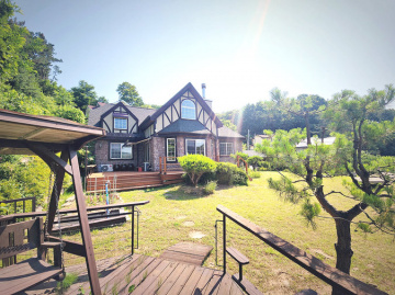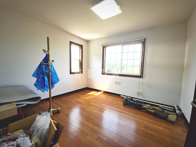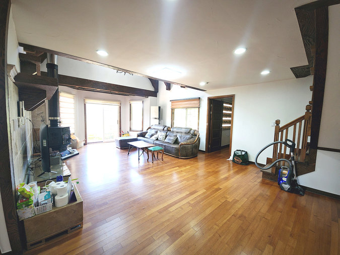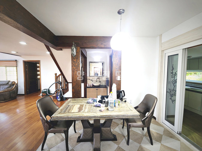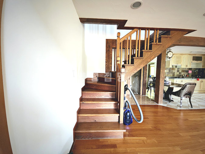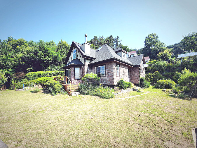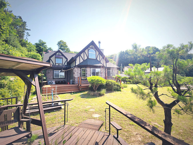 잔디와 디딤석이 어우러진 마당은 깔끔하게 관리되어 있으며, 넓은 데크와 나무그네, 텃밭 공간까지 마련되어 전원생활의 여유를 더해줍니다. 자주식 차고와 정원 조경이 조화를 이루어 실거주와 휴식을 동시에 충족시키는 구조입니다.