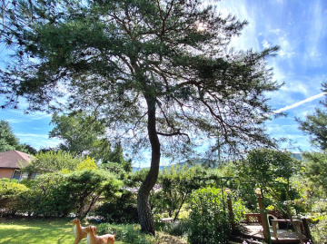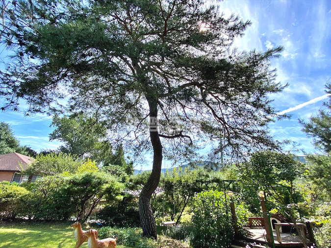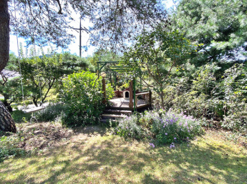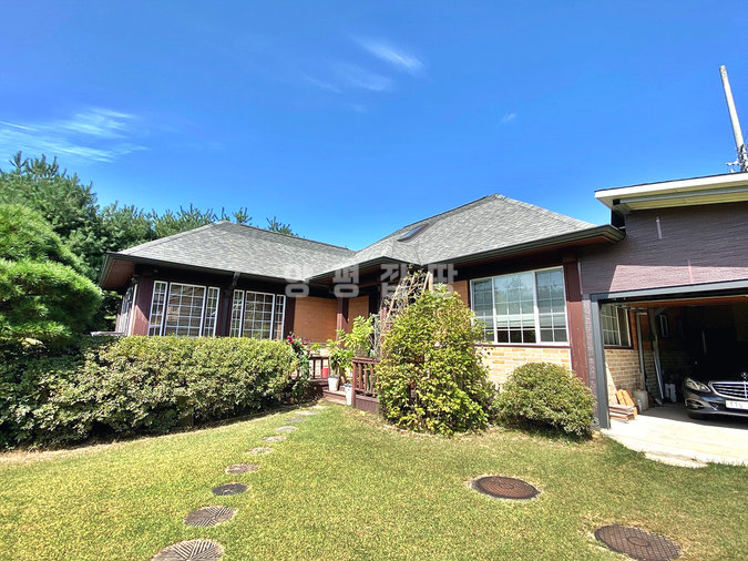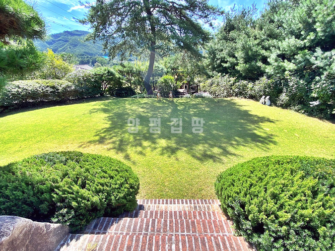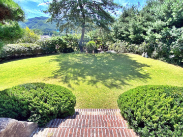 넓은 정원에는 잔디와 다양한 정원수, 디딤석이 어우러져 있으며, 터밭과 정자 공간이 마련되어 있습니다. 관리가 잘 되어 있어 정돈된 인상을 주며, 주차는 1대가 가능합니다. 추가로 다락방과 서비스 공간도 활용할 수 있습니다.
