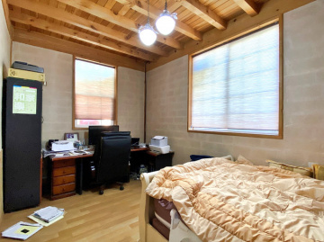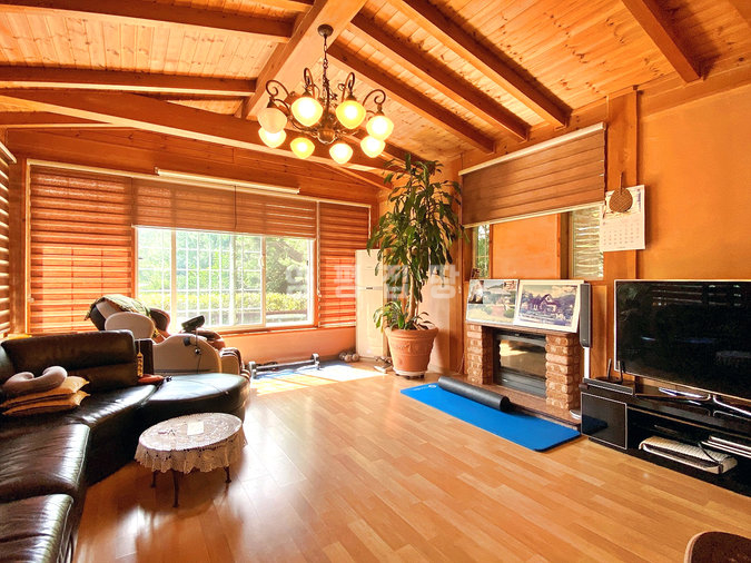 2005년 준공된 단층 구조의 주택은 중간 크기의 거실과 주방, 다용도실, 침실 3개, 욕실 2개로 구성되어 있습니다. 내부는 홍송과 황토 마감재를 사용하여 건강에 이로운 환경을 조성했으며, 실내 공기질과 단열 성능이 우수합니다.
