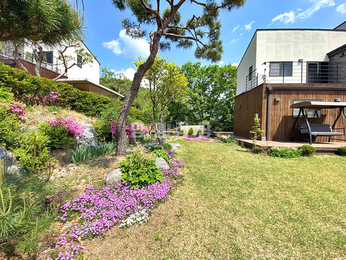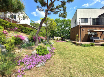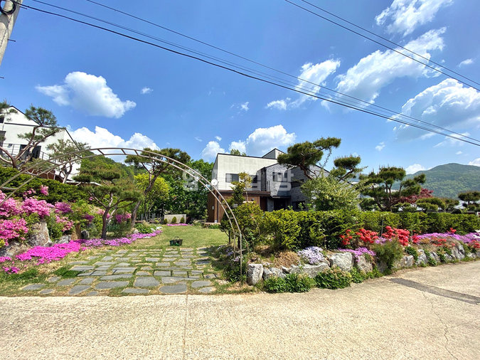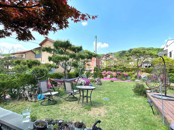 넓은 잔디정원과 소나무, 조경석으로 꾸며진 정원은 전원생활의 여유를 만끽할 수 있게 하며, 텃밭과 작은 연못도 마련되어 있습니다. 데크와 발코니, 바베큐장이 갖춰져 있어 여가시간을 즐기기 좋고, CCTV와 같은 보안시설이 더해져 안심할 수 있는 생활 환경을 제공합니다. 본 주택은 자연 속 여유로움과 편리한 생활 여건이 조화된 매력적인 선택지입니다.