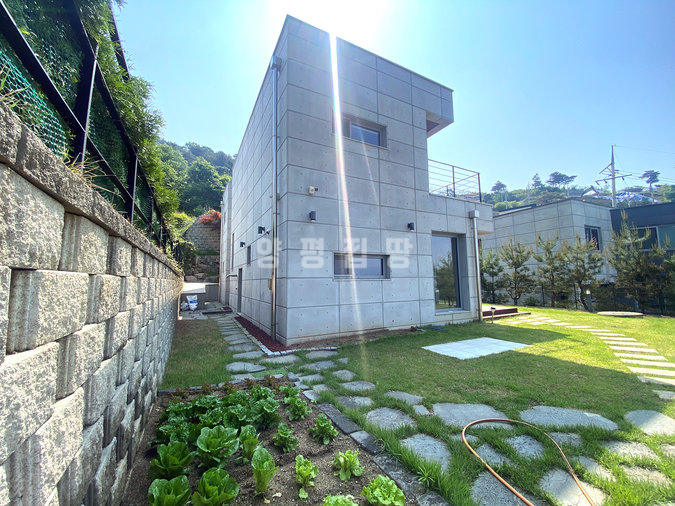 푸른 잔디마당과 아담한 데크, 디딤석과 조경수로 꾸며진 정원은 정갈하면서도 실용적입니다. 주차박스와 펜스로 마감된 외부 공간, CCTV까지 갖추어 생활의 편리함과 안전성을 확보했습니다. 전원 속에서도 양평 중심지와 가까워 실거주와 세컨하우스 모두에 어울리는 주택입니다.